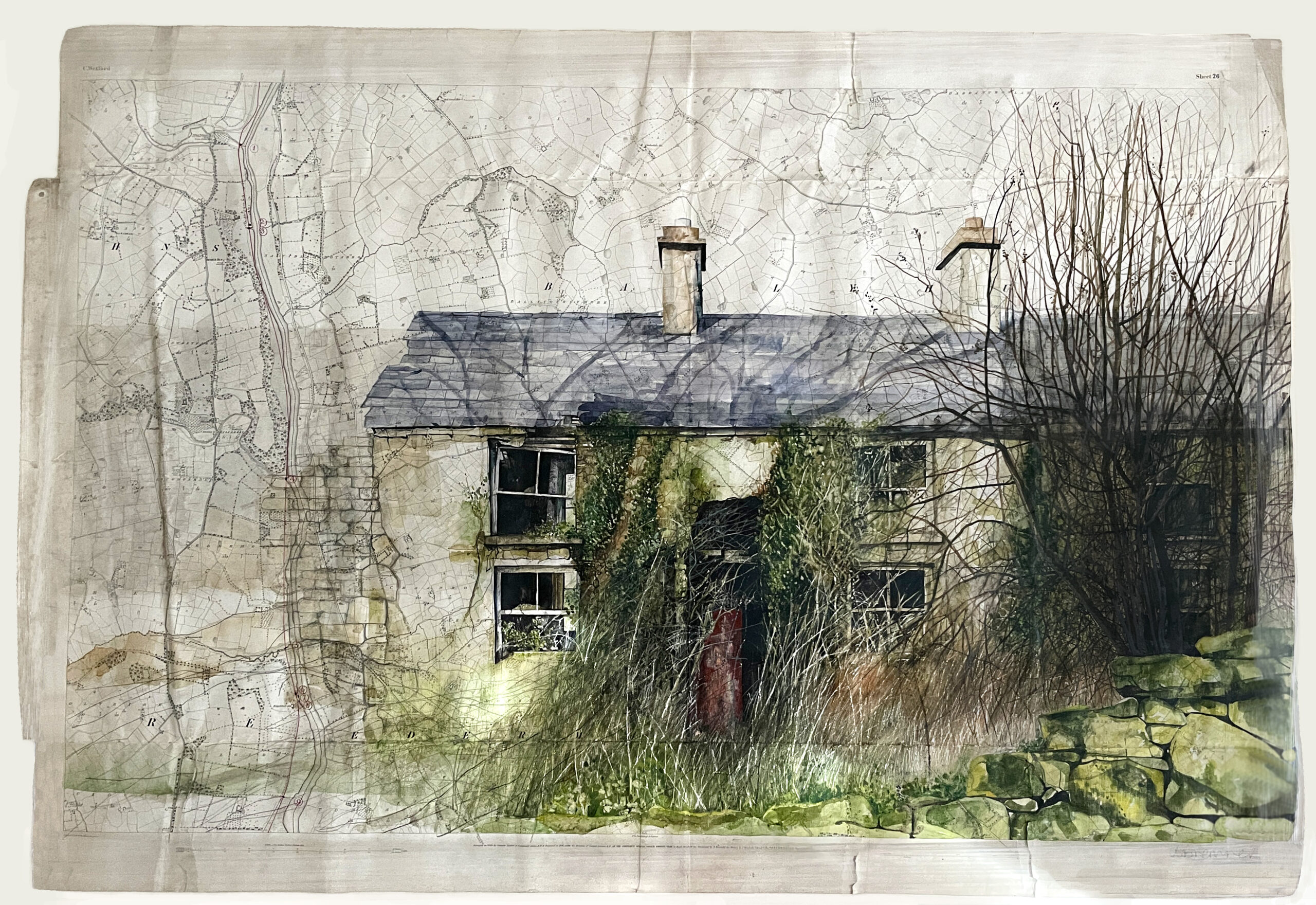 Watercolour on map.